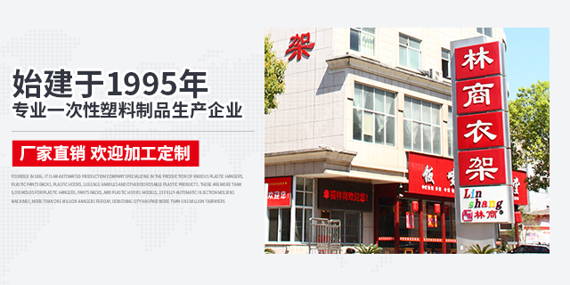 浙江林商衣架有限公司,位于东阳市江北工业区画水北路163号,占地8500平方木,集厂房、仓库、职工公寓等建筑面积168000平方米,始建于1995年,是一家专业生产各种塑料衣架,塑料裤架、塑料挂钩、箱包提手等一次性塑料制品的自动化生产企业,现有塑料衣架、裤架、塑料挂钩等产品模具5000余款,全自动注塑机32台,日产衣架逾百万只,是东阳市纳税超百万企业,东阳市文明单位,金华市诚信民营企业、金华市知名商标、知名产品,浙江省A级重合同守信用单位,获得各类奖项70余项,公司内设有党支部、团支部、工会、妇委会等组织,施行《军队+学校+家庭+事业》的人性化管理模式,始终坚持诚信经营的理念,致力打造教导型企业,创建一支军队般自动自发的卓越团队,努力为每位客户提供物美价廉的产品和优质的服务,实现“一百年我们还做衣架”的林商梦!
